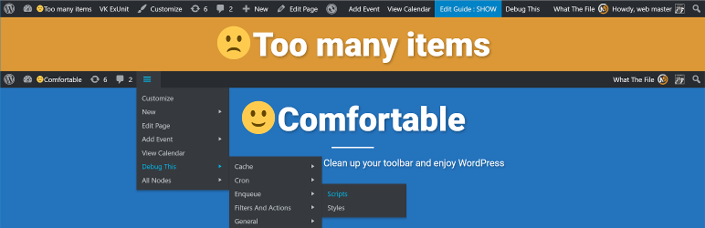 Some of themes or plugins add menu items to the toolbar (admin bar). These additional items may be useful, but sometimes you feel annoyed as the toolbar fills up with various items. Admin Bar Menu Packer gathers these items on the toolbar into one hamburger menu. The message “Howdy, username” next to the Avatar is also removed, but most WordPress built-in items remain as they are.