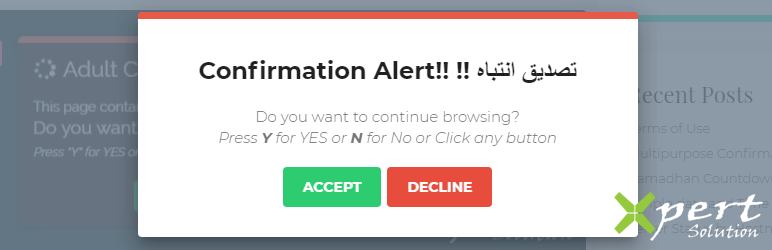 Multipurpose Confirmation Alert can be use to show confirmation alerts on your website. It can also be add to a separate page/post. It allows you to customize the Alert Box Title, Description and even the buttons. It has predefined themes and backgrounds along with other features.