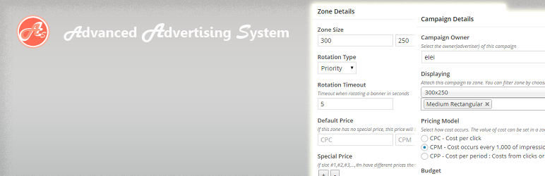 If you have customers who want to promote their products on your site, Advanced Advertising System can help you. The main of this plugin is to manage advertisers, to control campaign especially the pricing model for each advertiser. You can manage ads zone(position) and specify the pricing model(CPM, CPC, CPP) for each zone slot. Front-end display is based on priority system.