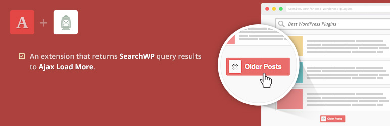 Ajax Load More for SearchWP is a tiny extension that provides the functionality for returning SearchWP query results to Ajax Load More for infinite scrolling.