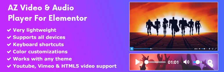 “AZ Video and Audio Player Addon for Elementor” – is a simple, lightweight and customizable HTML5, YouTube, Vimeo & mp3 media player that supports all devices. It supports all the major file formats for audio & video. Included audio & video player widget / addon has lots of customization optios, using those options you can change the player settings how you want.