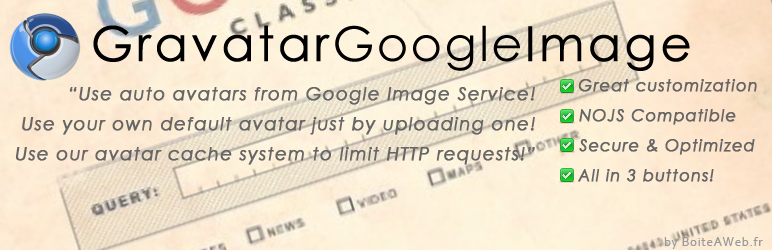 This plugin takes place between the gravatar picture and the default avatar return. If an email is not associated with a gravatar account, a Google Image request is sent to grab the first best relevant face picture of this member.