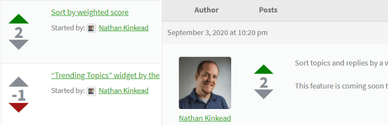 This simple yet powerful plugin integrates with the bbPress forum plugin to add a new feature which allows users or visitors to vote up or down on topics and replies. Each topic and reply has a total score with an up arrow and a down arrow.