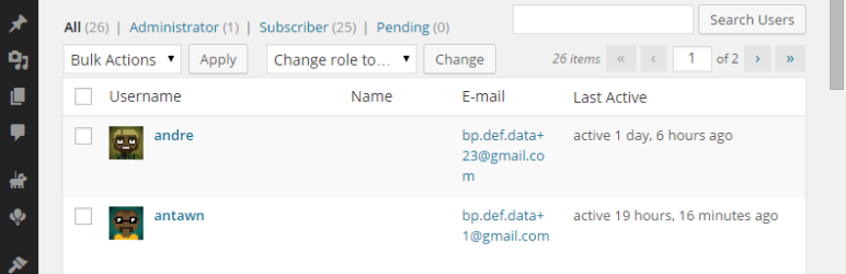 BuddyPress Last Active Users (wp-admin)