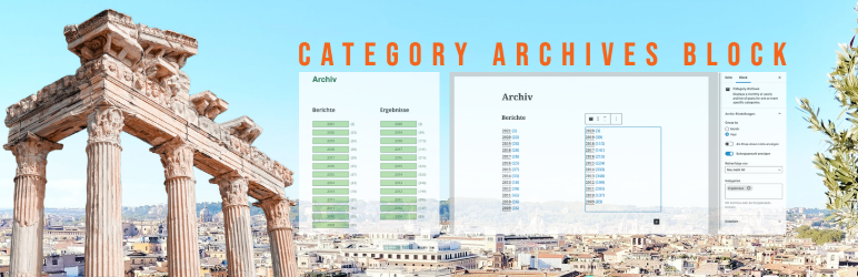 Displays a archive of posts for one or more specific categories in the Gutenberg block editor. It can be configured to either show by month or year with post counts and as a listing or a pulldown.