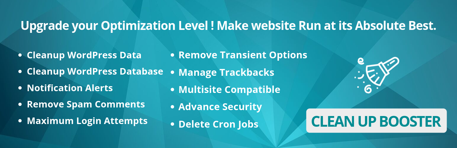 Clean Up Booster is a lossless optimizing tool which quickly and easily cleans up the WordPress backend and minimize the time of website loading.