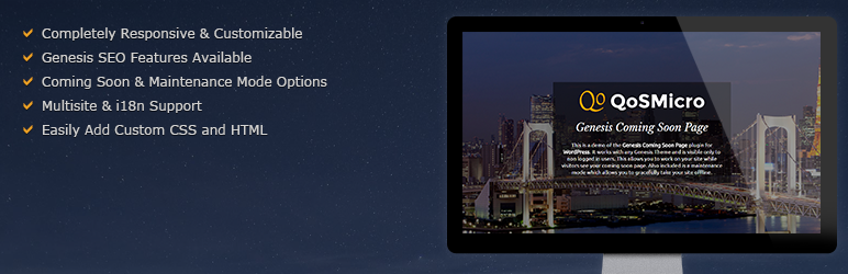 Genesis Coming Soon allows you to create a Coming Soon, Under Construction or Maintenance page while taking advantage of all the Genesis Framework features.