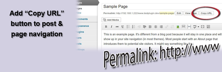 Copy URL places a “copy URL” button at the top of existing posts/pages. By clicking the button the post/page permalink is copied to the clipboard.