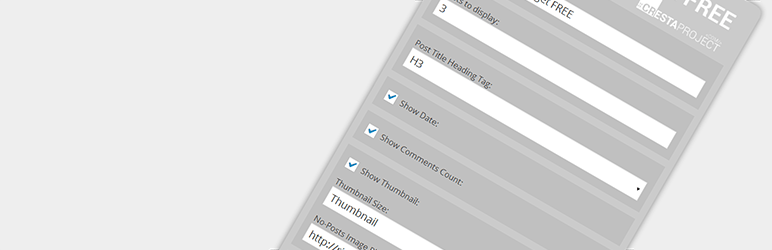 FREE Crest Posts Widget is a simple but powerful WordPress Widget which displays your posts with thumbnail and many other options like the ability to show the date, the number of comments, to change the length of the excerpt, change the size of thumbnails and much more.