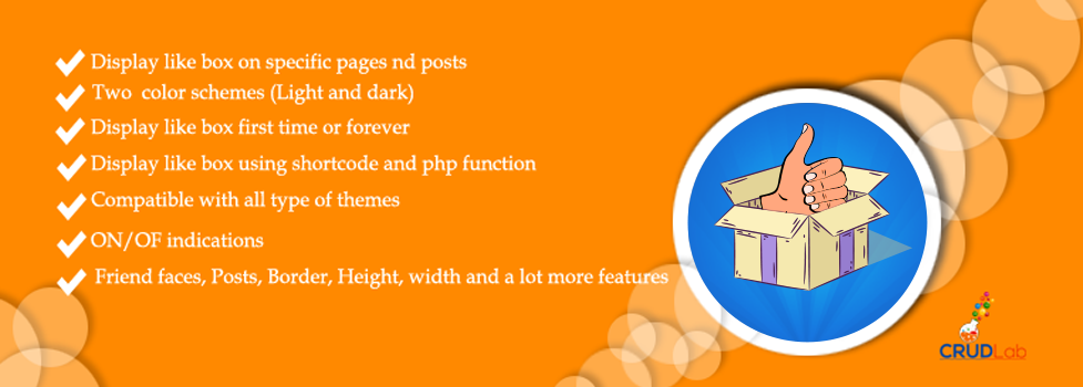 CRUDLab Facebook Like Box allows you to add Facebook like box to your wordpress blog. It allows webmasters to promote their Pages and embed a simple feed of content from a Page into their WordPress sites.