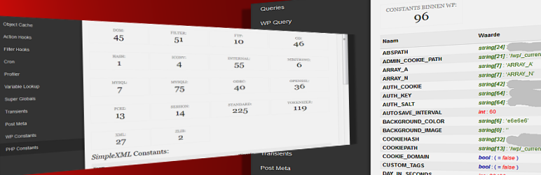 Debug Bar Constants adds three new panels to the Debug Bar that display the defined constants available to you as a developer for the current request: