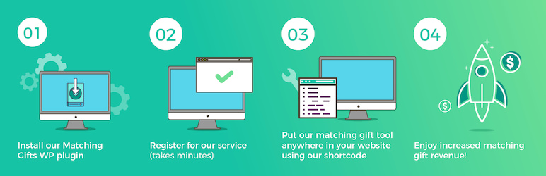 Our plugin seamlessly integrates our database of corporate matching gift and volunteer grant programs with your WordPress website. Insert a shortcode anywhere on your site and our plugin will appear, enabling your donors and volunteers to instantly access matching gift and volunteer grant information. Most organizations add our plugin onto a dedicated matching gift page, as well as into the donation process.