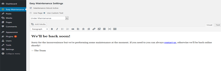 This plugin can be used when your site is under maintenance mood. If any visitor visit in pages of your site they will be redirect and they will see your message. You can also set a page for this. You can also use this for landing page