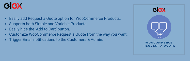 For complete list of features and details, Please visit ELEX WooCommerce Request a Quote Plugin for WooCommerce.