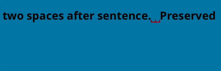 Even though you may add two spaces after each sentence when writing a post (assuming you subscribe to a writing style that suggests such spacing) web browsers will collapse consecutive blank spaces into a single space when viewed. This plugin adds a (non-breaking space) after sentence-ending punctuation to retain the appearance of your two-space intent.