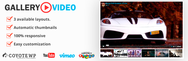 - Support for videos: Youtube and Vimeo