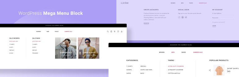 The WordPress navigation menu plugin adds a few free mega menu Gutenberg blocks for different purposes:
