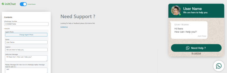 Integrate Free WhatsApp chat support dialog directly into your WordPress website and that will help you to increase leads/sales from your website. this is well design with lightwight code help to attract users for chat with active agent using WhatApp application.