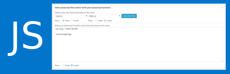 A simple WordPress plugin that allows users to select files Javascript and/or write Javascript functions to any single page or post