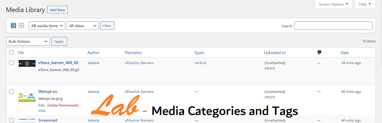 Lab Media Categories and Tags