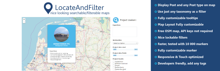 LocateAndFilter is a versatile and highly customizable WordPress plugin aimed at creating searchable/filterable maps.