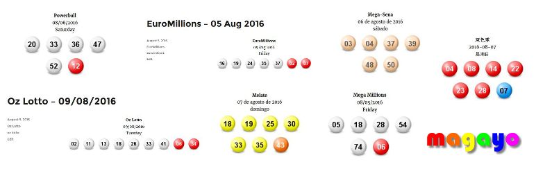 magayo Lottery Results plugin allows you to easily display lottery results and lottery jackpots in your WordPress blog. You can select and display the draw results and next jackpot amounts for multiple lottery games. Over 600 lottery games around the world are supported.