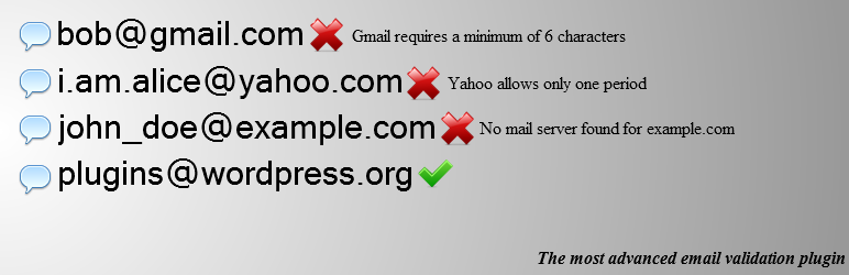 - Integrates with the is_email() function of WordPress. So it works seamlessly with Contact Form 7, Jetpack/Grunion contact forms, WordPress registration form and any form which uses the
