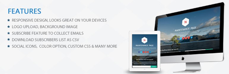 Allows you to quickly create a maintenance/coming-soon page. You can use this plugin whenever your site is down for maintenance, currently going any upgrade or is in development. Built in options panel to add logo, background image, social icons, color, subscribe field and many more.