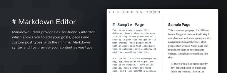 Markdown Editor replaces the default WordPress editor with a Markdown editor for your posts and pages. This plugin uses the Jetpack Markdown module for converting Markdown into HTML and plays nicely with Jetpack if both plugins are installed.