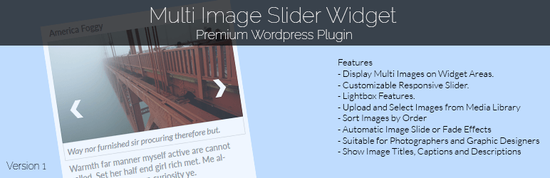 Display Multi Images from your Media Library in a Modern Responsive Slider. This widget includes option to customize the Responsive Slider.
