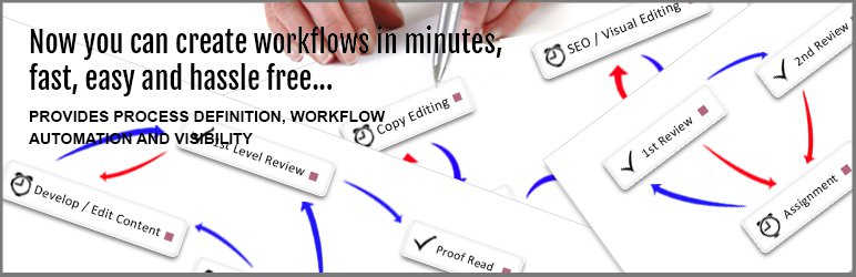 Oasis Workflow is a powerful feature rich plugin designed to automate any editorial workflow process using a simple, intuitive drag and drop interface.