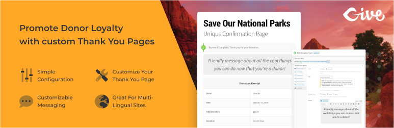 “Per Form Confirmations for GiveWP” let’s you designate unique confirmation pages per form in the GiveWP plugin. This let’s you customize your “thank you” messaging per form. It is also very helpful for sites that use WPML to support multiple languages, since they have to designate a unique confirmation page per language, per form.