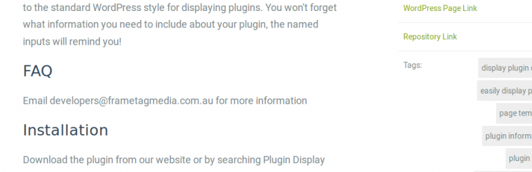 Plugin Display Page