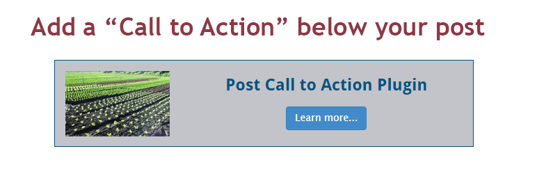 Display a call to action at the bottom of your blog post. You want your visitors to do something on every page. If you are writing about a service you offer, you link the post to that service and a “call to action” bar will appear at the bottom of the post. This will help improve online conversions. Direct your visitors where you want them next.
