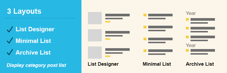 Post List Designer is use to display WordPress posts with list designs. You can display latest post on your homepage/frontpage as well as in inner pages.