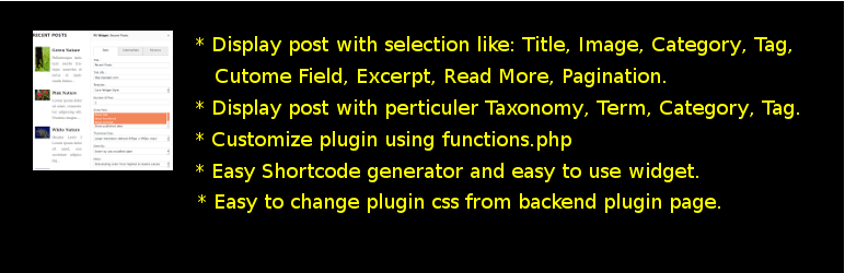 This plugin is used for display posts in widget as well as shortcode.