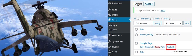 This plugin is simply used to quickly and easily duplicate a post. Just hover over a post in the edit screen and click on ‘Duplicate’ to create a duplicate post.