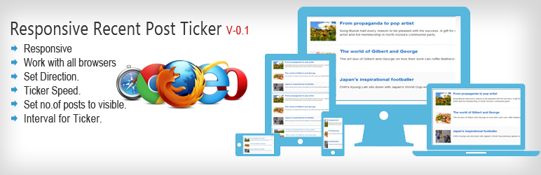 Recent posts is a vertical ticker in reponsive mode.Recent posts allows you to show your recent post in vertical ticker mode.Recent posts have various options in admin section to set speed,direction,no.of recent posts to show and interval.