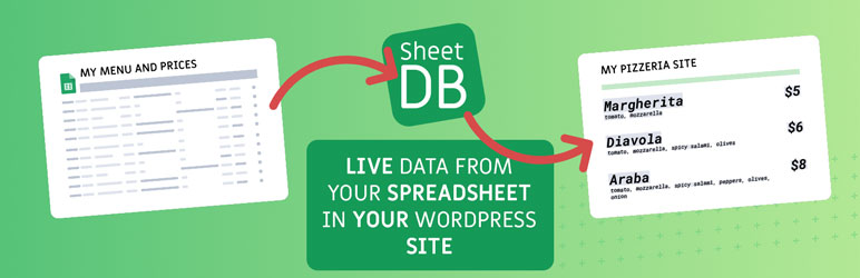 This plugin use SheetDB.io to fetch data from Google Spreadsheet. You must have an account at SheetDB – account is free for 500 requests per month. More information at SheetDB.io or at privacy policy