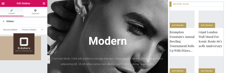 Sidebars for Hello Elementor Theme features allows you to: