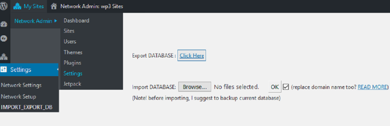 Easily Import OR Export wordpress database. Also, this plugin gives you quick way to migrate typical websites (for example migration from TEST-site —> PRODUCTION-site). After activation, visit SETTINGS menu.