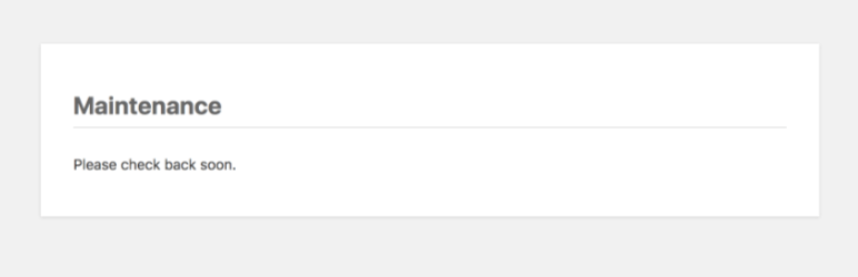 Slim Maintenance Mode is a lightweight solution for scheduled maintenance. Simply activate the plugin and only administrators can see the website.