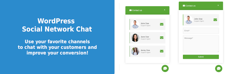 You can also set 1-3 chat agents on every channel. With WhatsApp and Email you can also set a predefined message box for the user, with or without a chat agent(s) image and name.