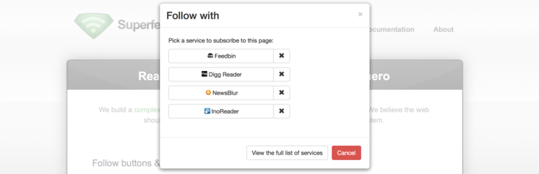 If the user clicks the button, then, it will load an external iframe with JavaScript. The iframe will show the user the list of their favorite subscription tools. Once they pick one, they’re redirect to it with your blog information.