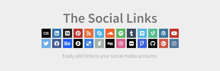 The Social Links plugin adds a widget and shortcode to your WordPress website allowing you to display icons linking to your social profiles. The new version includes the following social networks: