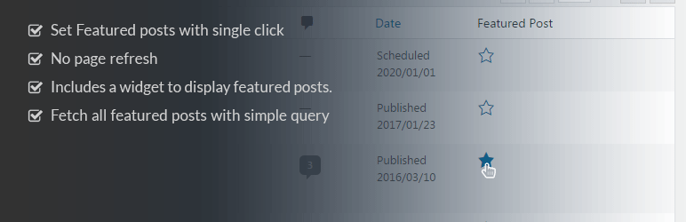- A column name ‘Featured posts’ will be there with a star icon in each row.