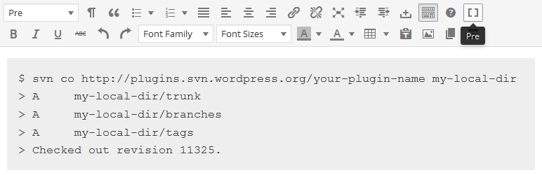 The button and shortcut toggle the preformatted style on the selected text or the current line. It uses the same command as the Pre item in the Formatting list in the toolbar.