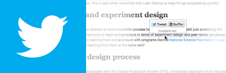 Add a Tweet and Buffer button to key sentences right inside each blog post. Just add [tweetable] tags around the text. eg. “Here’s my blog post. [tweetable]This profound sentence is tweetable. Tweet it![/tweetable] Thank you.”