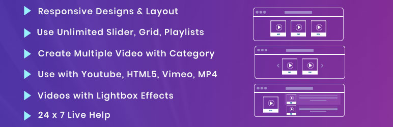 This plugin Use for responsive Video Player And Video Gallery with using HTML5, YouTube, Vimeo. vedio gallery with click to Popup on your website.