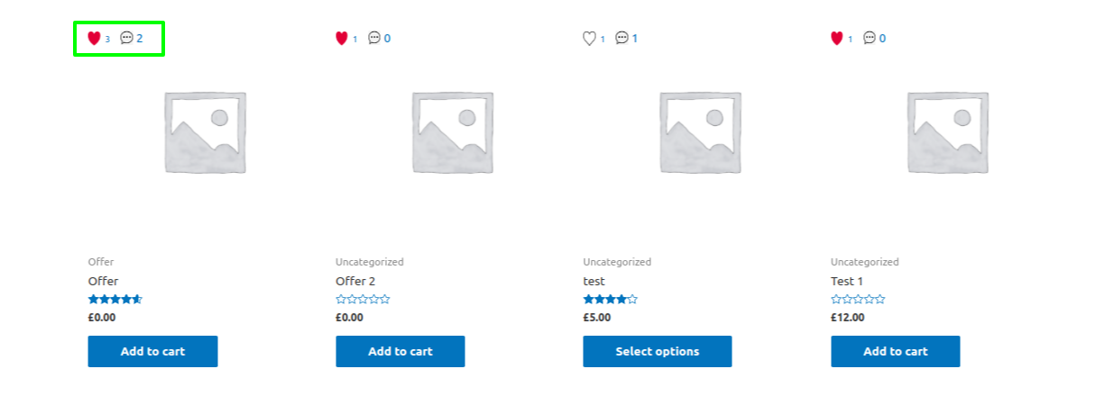 Product like buttons and total likes and comments are shown on the product page and on each product in an archive page (e.g. product category).
